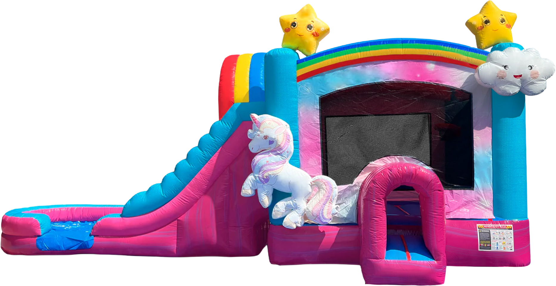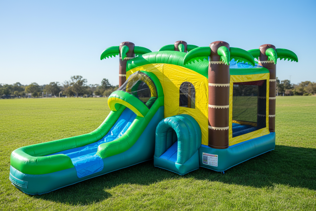 All of our Bounce House Slide Combos are ASTM Compliant. They are made of fire retardant, high-quality, commercial vinyl. All Bounce House Slide Combos are 100% lead-free.