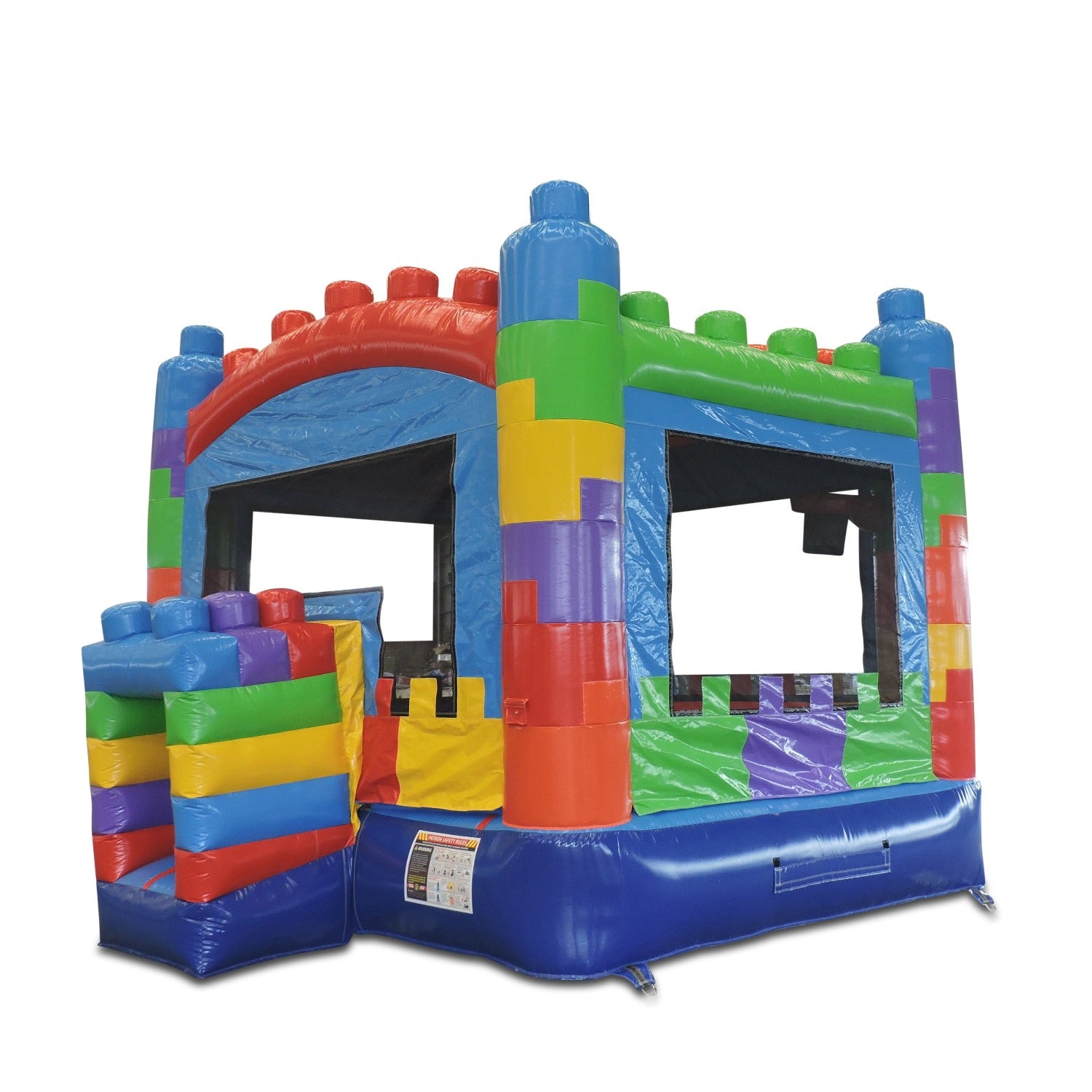 The Blocks Bounce house also includes a new safety tunnel to get in and out of the bounce house. All of our Bounce Houses are ASTM Compliant. They are made of fire retardant, high-quality, commercial vinyl. All Bounce Houses are 100% lead-free. Rental operations are sure to benefit from including this Blocks bounce house in their inventory. The Blocks Bounce House is lightweight and compact for easy transport and set up in almost any yard. HullaBalloo Sales' Blocks Bounce House is just what your rental inventory needs to stand out from the rest. HullaBalloo offers the best inflatables at the most reasonable price.