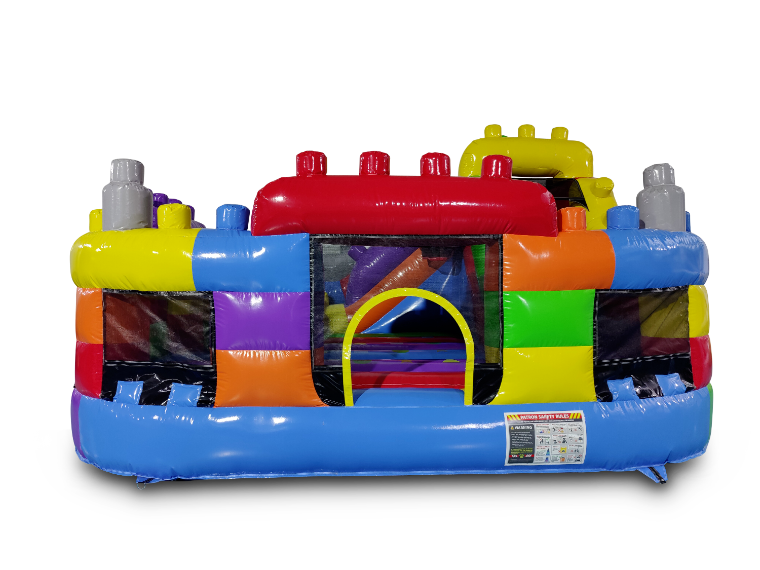 Check out or NEW Blocks Playground Combo, a fun and active bounce and slide combo that features colorful design and countless features for playing. Great for all types of events and occasions. Try out our NEW Blocks Playground Combo and see how much fun your kids can have bouncing, climbing, sliding and playing in this awesome inflatable bounce and slide. Bouncing area also features colors and shapes on the floor, popup designs and a basketball hoop for playing.