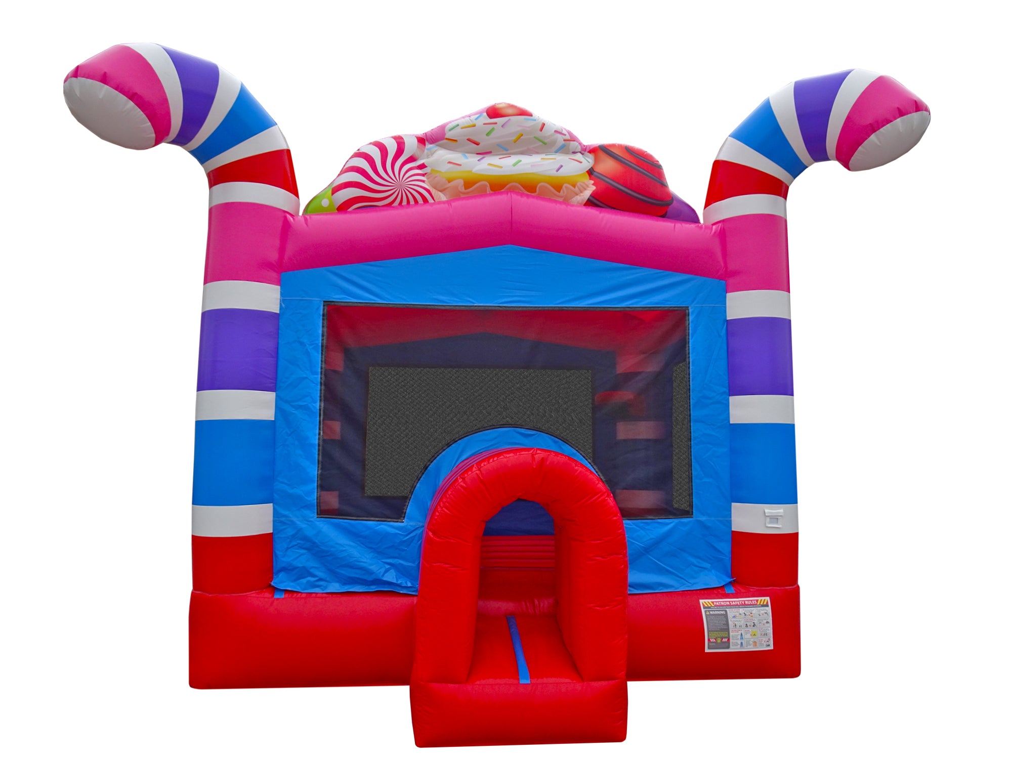 HullaBalloo Sales' Candy Bounce House is sure to bring some sweet fun to your next event. This Candy bounce house is great for all ages and is perfect for any candy or holiday themed parties. The show-stopping Bounce House is excellent for outdoor birthday parties and or backyard events. The Candy Bounce was made for a candy lover and will sure to bring some bouncing good time to your next party. The Candy Bounce house also includes a new safety tunnel to get in and out of the bounce house. All of our Bounce Houses are ASTM Compliant. They are made of fire retardant, high-quality, commercial vinyl. All Bounce Houses are 100% lead-free. Rental operations are sure to benefit from including this Candy bounce house in their inventory. The Candy Bounce House is lightweight and compact for easy transport and set up in almost any yard. HullaBalloo Sales' Candy Bounce House is just what your rental inventory needs to stand out from the rest. HullaBalloo offers the best inflatables at the most reasonable price.