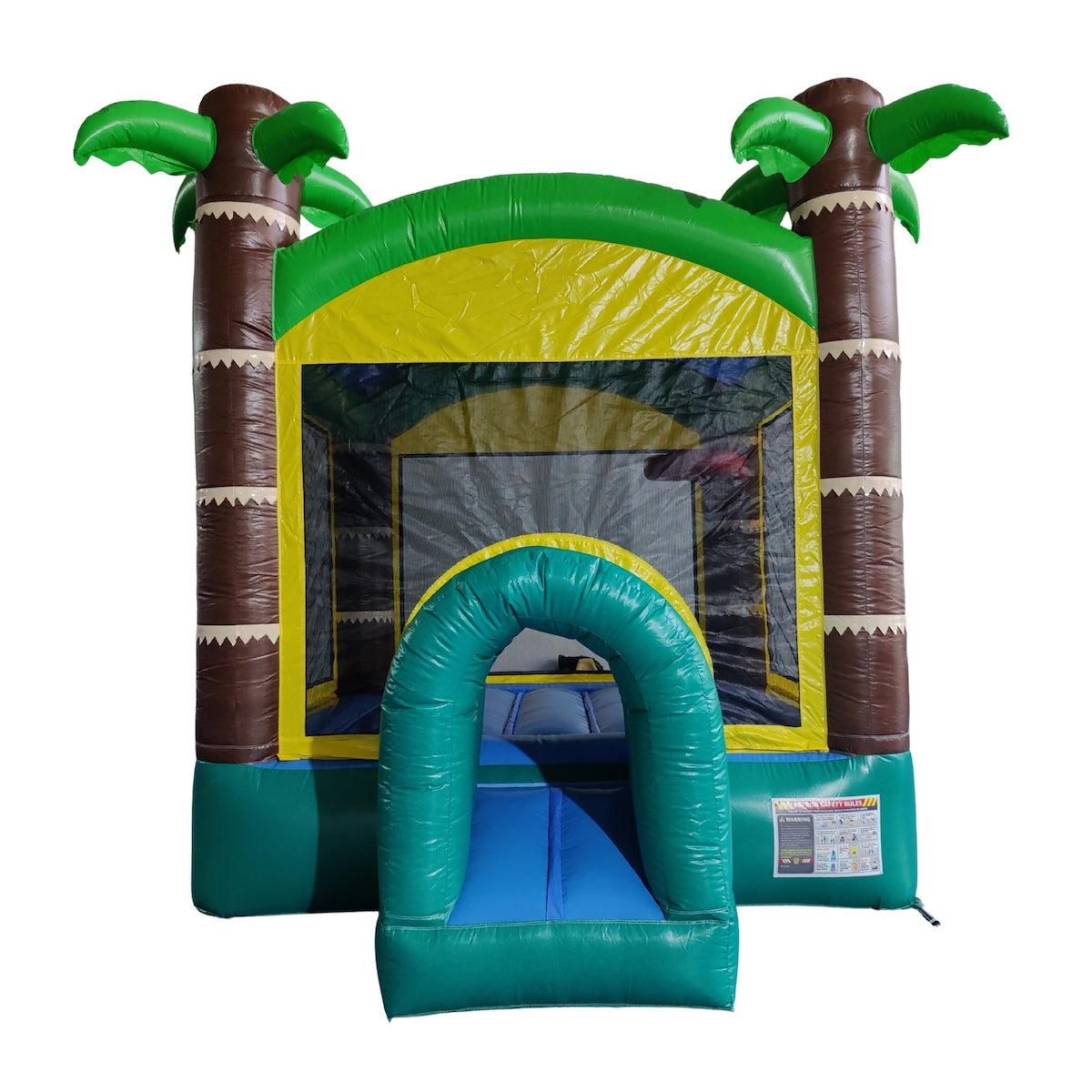The Tropical 10x10 is built to be both strong and easy to handle. Reinforced stitching and heavy-duty vinyl in high-stress areas ensure it can withstand repeated use, while lighter materials in low-stress areas make setup and transport easier. It’s made from commercial-grade vinyl that’s 100% lead-free and meets ASTM safety standards. The Unit also includes a safety tunnel at the entrance for easy access, along with mesh walls that provide airflow and clear visibility for supervision.Add the Tropical 10x10 to your rentals and provide a safe inflatable that fits neatly in smaller spaces without compromising the fun.