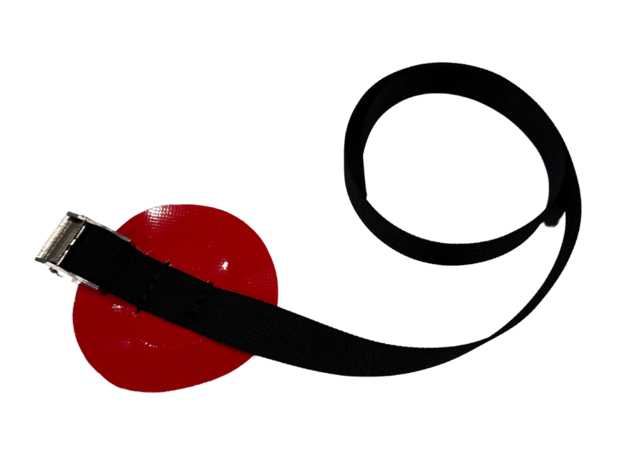 Easily repair your bounce house blower tubes with this 1-inch black replacement blower tube strap. Featuring a stainless steel cam buckle and 2.5 feet of adjustable length, it comes with a round red vinyl material that allows you to quickly glue it onto your existing blower tube, replacing old or damaged straps with ease.