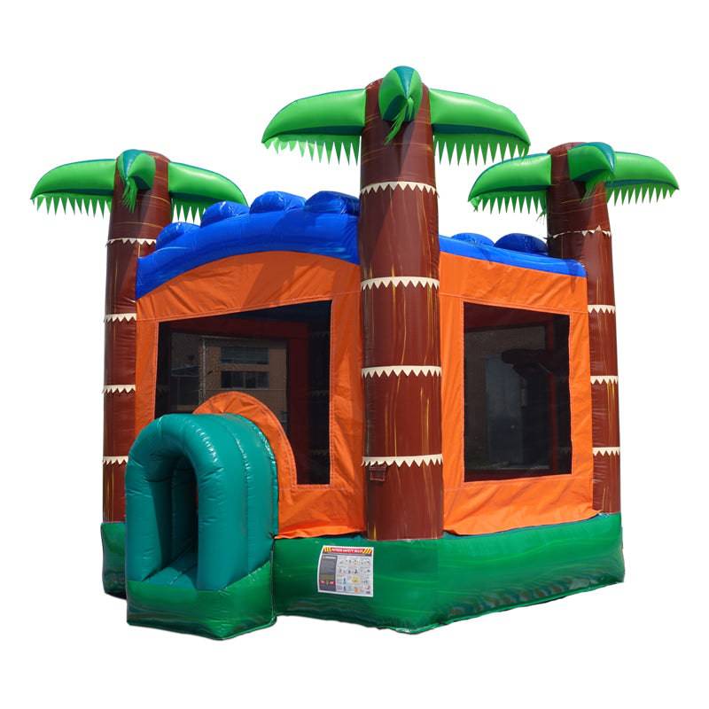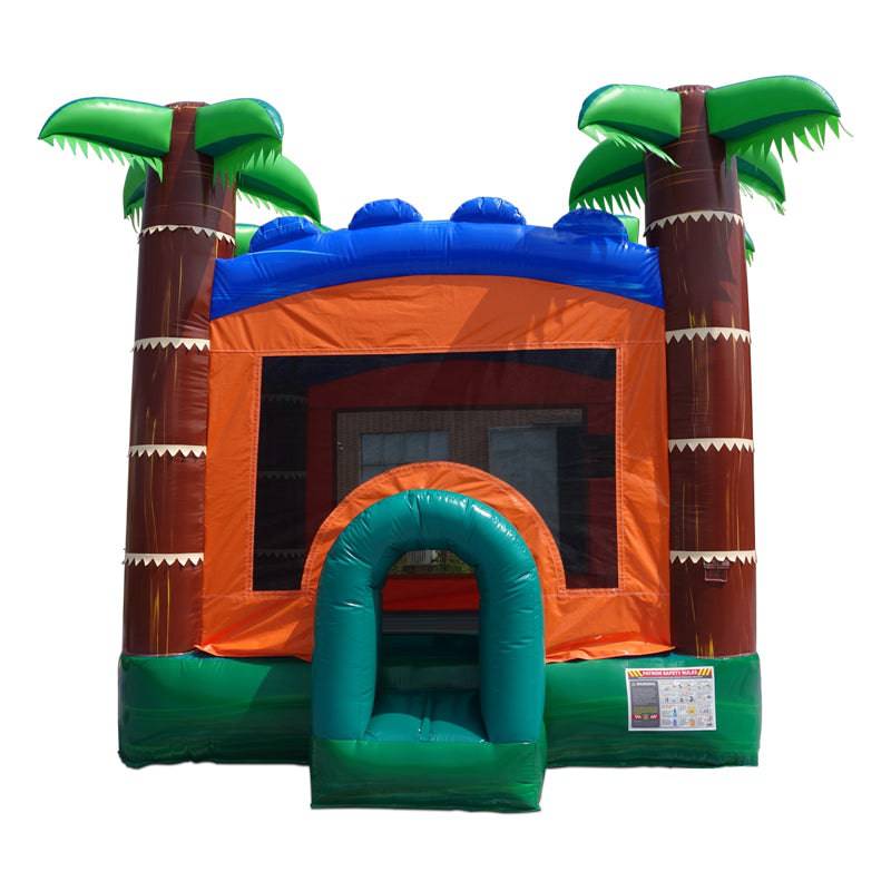 HullaBalloo Sales' Tropical Bounce House is sure to bring some summer fun to your next event. This Tropical bounce house is great for all ages and genders. The show-stopping Bounce House is excellent for outdoor birthday parties and or backyard events. Great for Tropical theme parties, Luaus, and Summer parties, the Tropical Bounce house also includes a new safety tunnel to get in and out of the bounce house. All of our Bounce Houses are ASTM Compliant. They are made of fire retardant, high-quality, commercial vinyl. All Bounce Houses are 100% lead-free. Rental operations are sure to benefit from including this Tropical bounce house in their inventory. The Tropical Bounce House is lightweight and compact for easy transport and set up in almost any yard. HullaBalloo Sales' Tropical Bounce House is just what your rental inventory needs to stand out from the rest. HullaBalloo offers the best inflatables at the most reasonable price.
