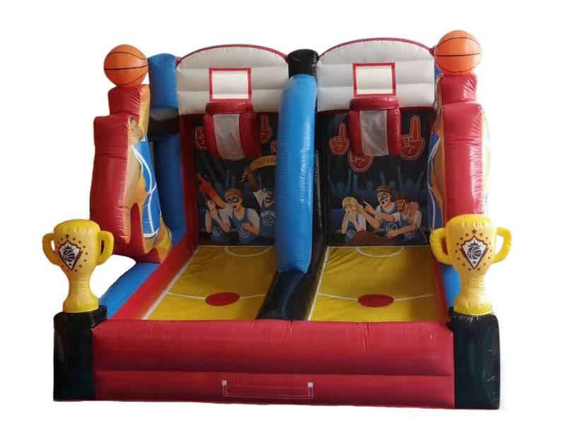 This Basketball Shooting Game takes Inflatables to another level. A competitive two-person Inflatable Basketball Game, see who can score the most points to win the game! This two-player game will sure to be everyone's favorite. This Inflatable is great for outdoor or indoor events, carnivals, corporate events, and parties. This Inflatable Basketball Shooting Game requires one blower always to inflate. All of our Inflatables are ASTM Compliant. They are made of fire retardant, high-quality, commercial vinyl. All Inflatables are 100% lead-free. Basketball Shooting Game is an inflatable everyone will love! Get this Inflatable Basketball Shooting Game is more than just your regular bounce house! Stand-out from the rest with this awesome Inflatable.