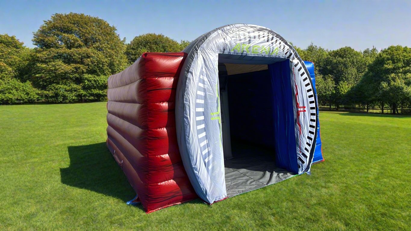 Interactive Light Game Arena takes inflatables to the next level. Great for competitive events, team bonding, corporate events, or carnivals. HullaBalloo's Interactive light arena is for two players. Beat the clock and hit the buttons that light up, the player to hit the most lit up buttons wins. Insert the light console into the designated areas in the arena. All of our Interactive Inflatables are ASTM Compliant. They are made of fire retardant, high-quality, commercial vinyl. All Interactive Inflatables are 100% lead-free. This game-like arena can be set-up inside or outdoors. This interactive light arena is perfect for rental companies, stand-out from the rest with this fun inflatable. HullaBalloo Sales Interactive Light Arena is more than just your regular bounce house inflatable.