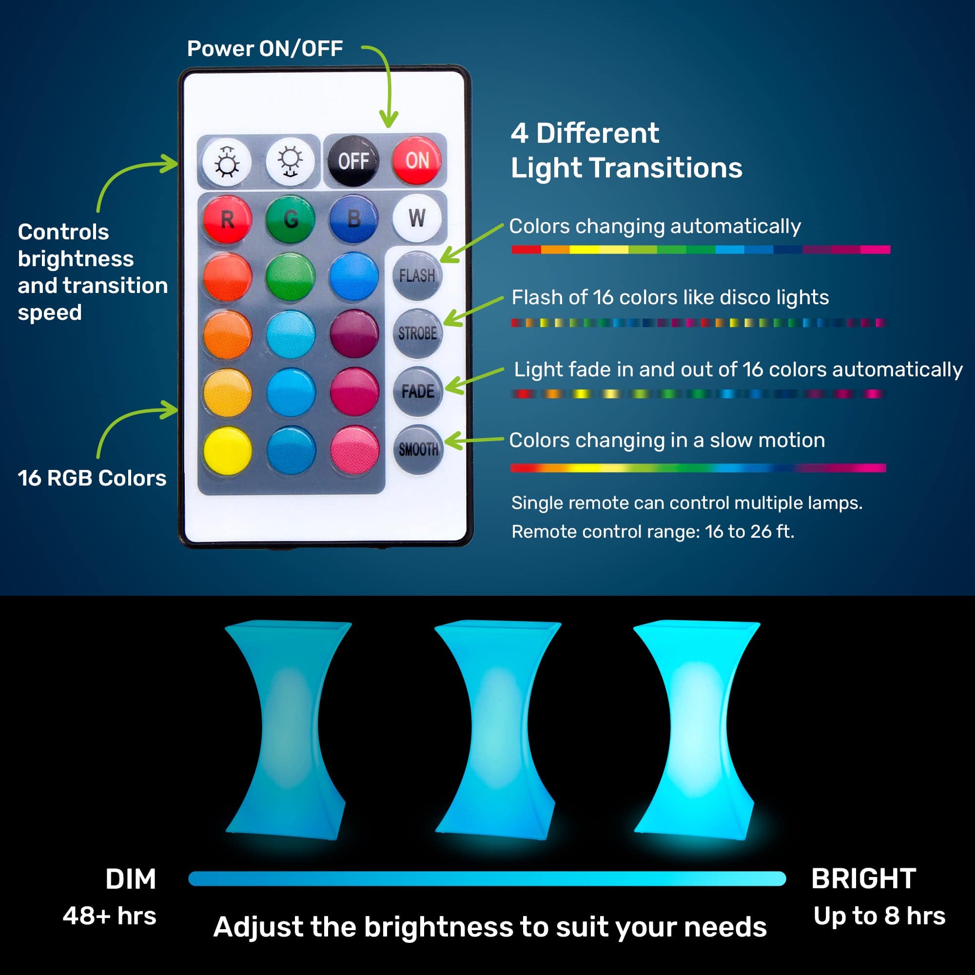 HullaBalloo Sales LED Square Cocktail Table is perfect for your next party. Create a colorful furniture arrangement. This LED furniture is nothing like your average party furniture. Pair the LED Round Cocktail Table with the rest of our LED furniture to create an enchanting look at your next party or event. This LED Cocktail table will create a vibrant atmosphere. The LED light is located at the bottom of the table. Charger and remote are included. The charge for the LED Square Cocktail Table lasts up to 8 hours. Shop HullaBalloo Sales LED Furniture for all your party rental needs!