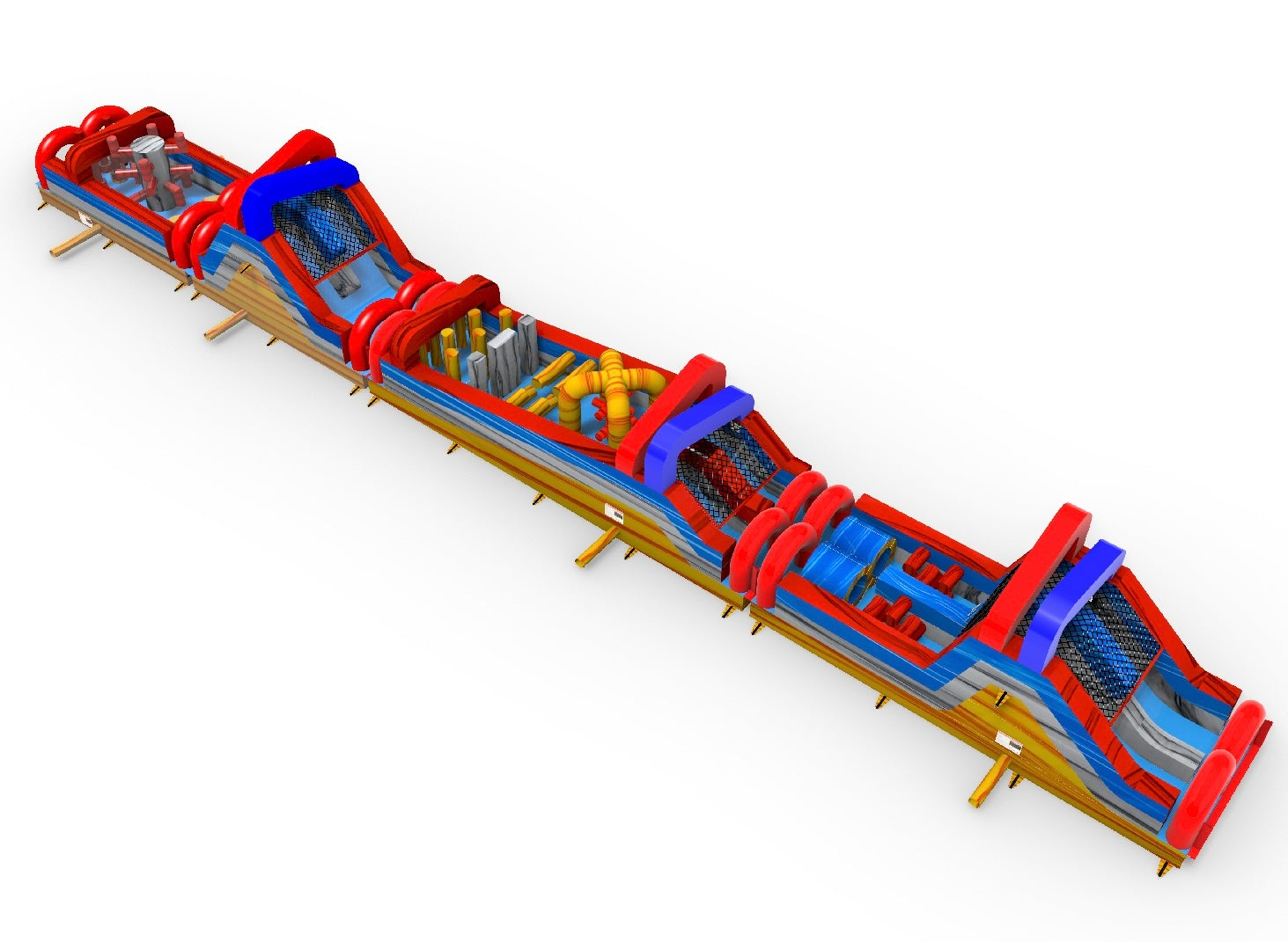 Race through this 4 Piece 105' Obstacle Course inflatable race course. This 2 person obstacle course is a fun and exciting race course for kids to adults of all ages. Manufactured with commercial grade PVC vinyl for the commercial party rental or indoor play center industry, or even for private backyard use, it is made with great quality and workmanship.