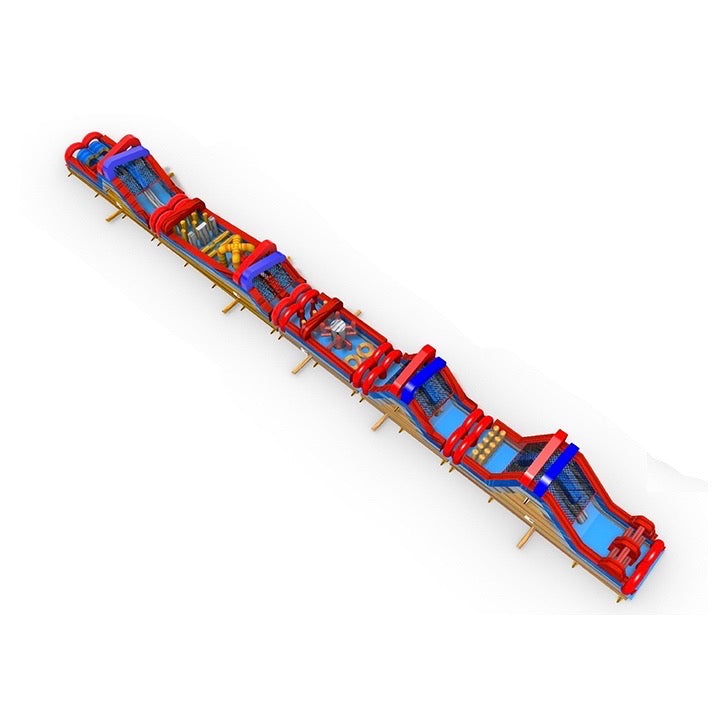 Race through this 5 Piece 140' Obstacle Course inflatable race course. This 2 person obstacle course is a fun and exciting race course for kids to adults of all ages. Manufactured with commercial grade PVC vinyl for the commercial party rental or indoor play center industry, or even for private backyard use, it is made with great quality and workmanship.