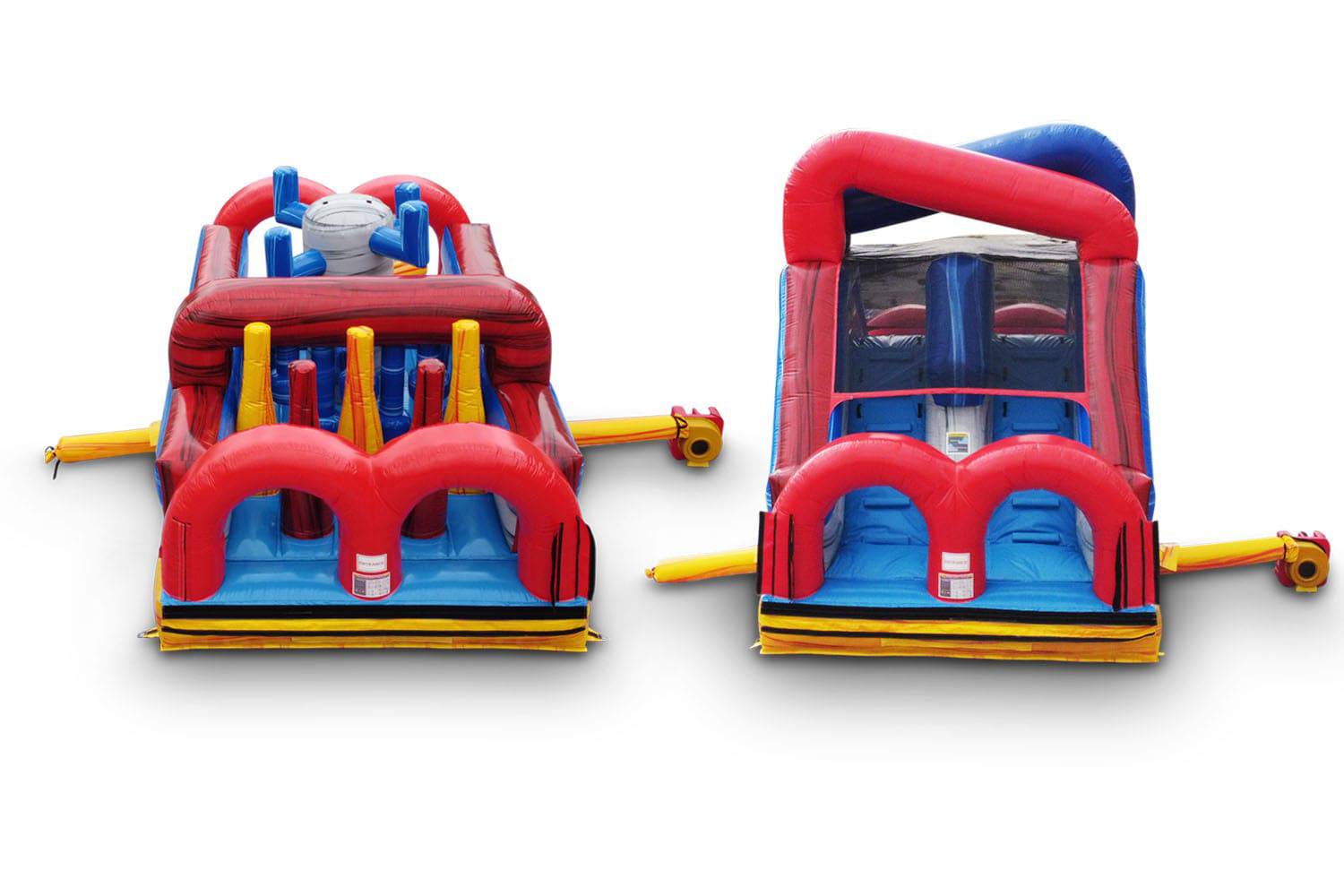 The 40' Obstacle Course has 2 zippers, one on each end of the obstacle, and 2 inflation tubes, one on each opposing sides. The 40' Obstacle Course is also unique that it has connection velcro's on the Entrance and Exit areas so you can connect them with our 35' Inclined Obstacle, 35' Obstacle, or 30' Obstacle Courses to make for a mega longer obstacle course.