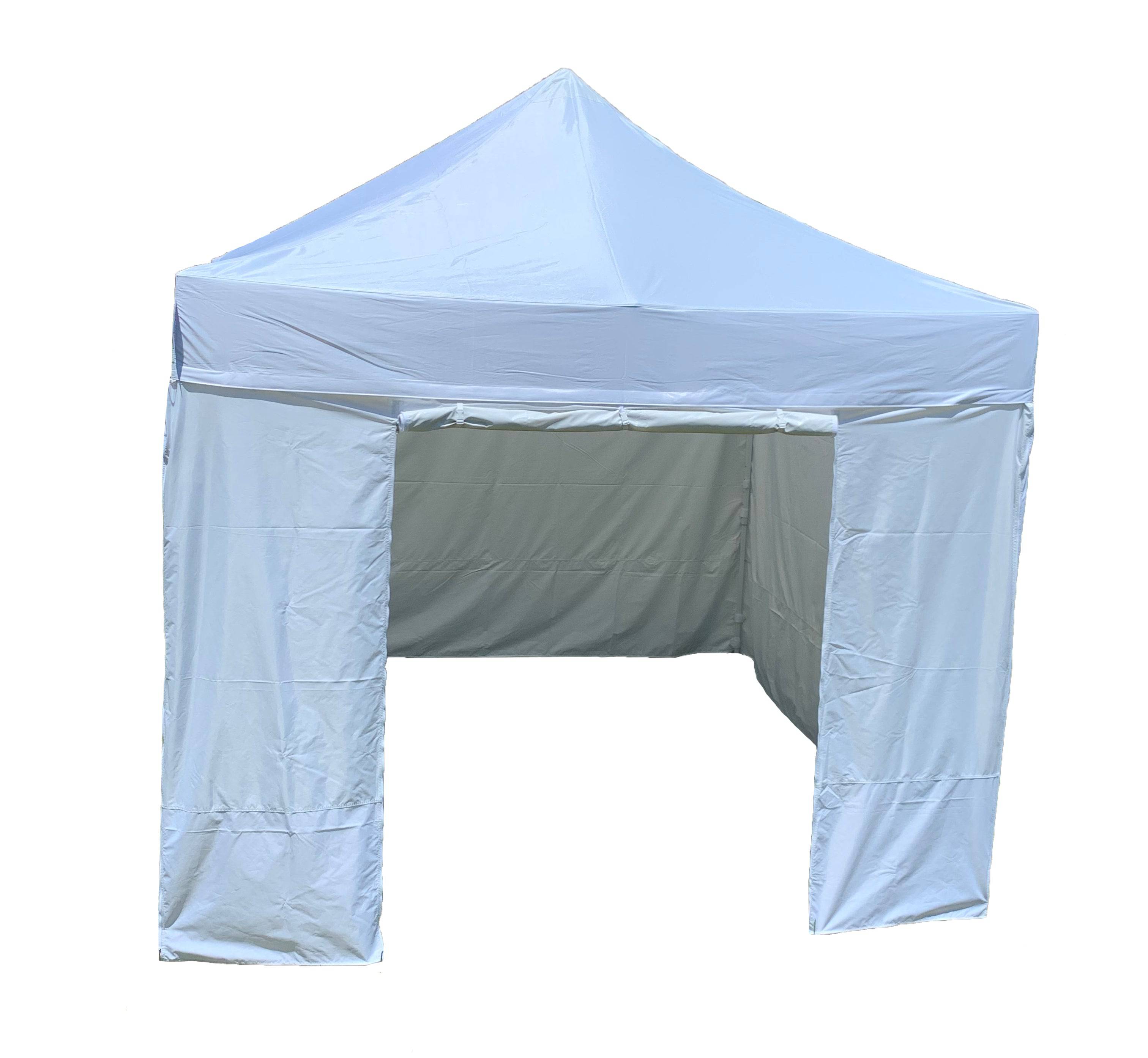 HullaBalloo Sales' set of 3 solid white 10x10 Deluxe + Premium Tent sidewall set is perfect addition to our 10 x 10 Deluxe Pop Up tent. The sidewalls are durable and are 100% poly pvc coating. Perfect to block out any bad weather or to create a more intimate, closed setting. The set also comes with one sidewall with door. The side walls are all connected with nylon zippers, making it easy to put together and take down.
